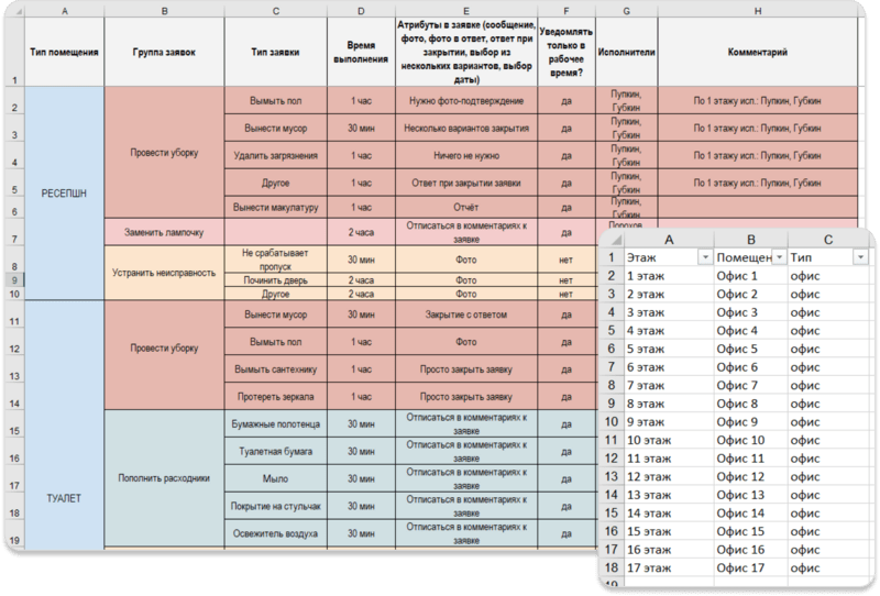 Олегу нужно было внести исполнителей по клинингу и список помещений офиса.
