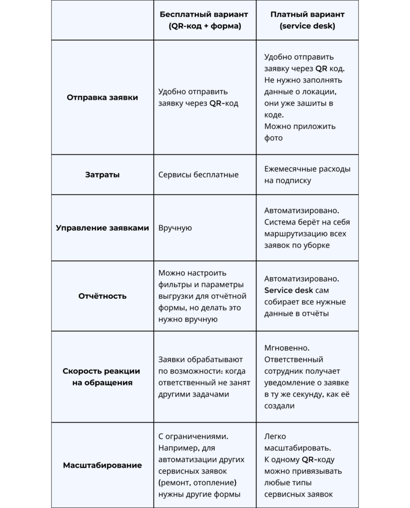 Рассказываем, как специалисту АХО бесплатно автоматизировать заявки на клининг по QR-коду, и сравниваем с платными решениями.