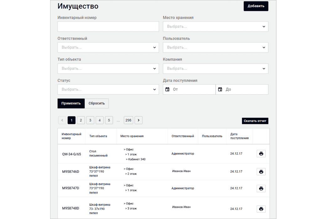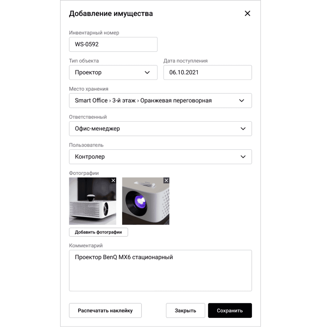 В системе за каждой ТМЦ закрепляется материально ответственное лицо. Передать ответственность за объект может только администратор или руководитель — для этого есть специальная роль.