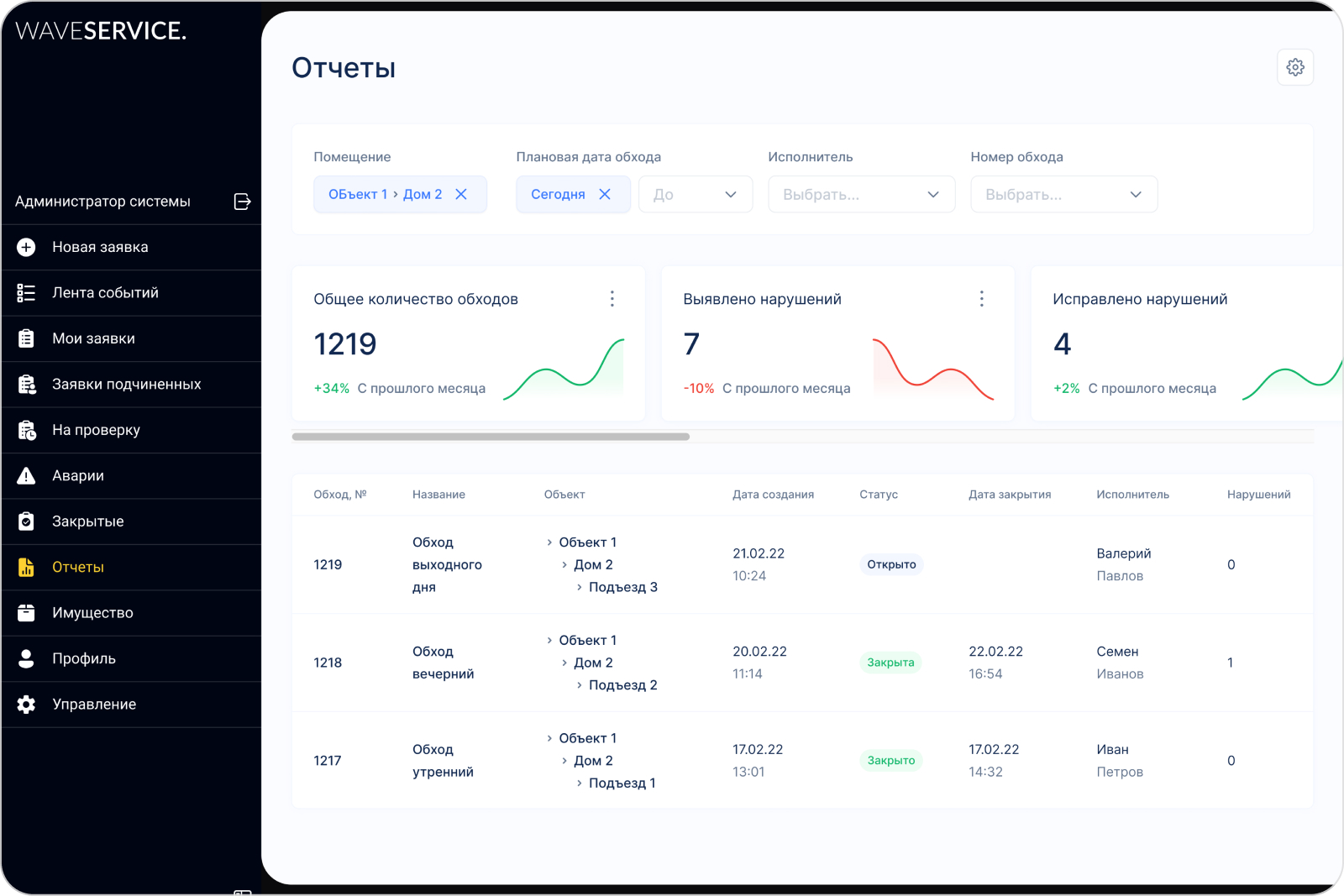 Wave Service не просто фиксирует замечания в самом обходе, но и помогает их устранять.