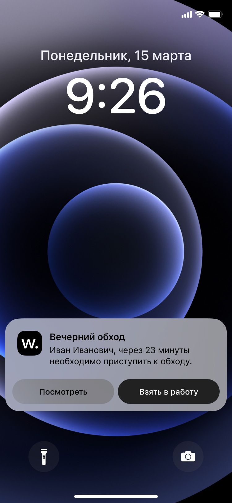 Они получают уведомления на мобильный телефон в нужное время. Например, каждый будний день в 8:00 задачи автоматически назначаются на Ивана Ивановича.