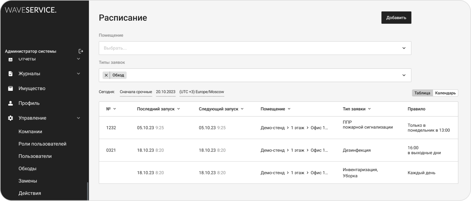 Если же требуется внеплановый обход, заявку можно создать вручную. Это удобно для внепланового контроля и оперативного реагирования на запросы. -