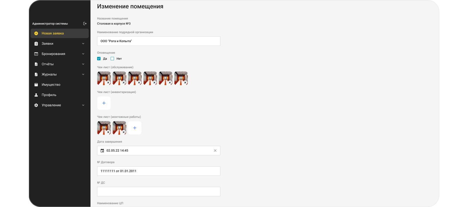 В процессе первичной настройки системы и согласования деталей стало понятно, что для задач заказчика необходим ещё один модуль — обходы по чек-листам. Это важный этап, который поможет контролировать работу подрядчика — сервисной бригады.Для пилотного тестирования системы было решено автоматизировать обслуживание двух групп объектов: 42 столовых, перешедших под управление организации, и более 530 помещений, отремонтированных в 2022 и 2023 годах.