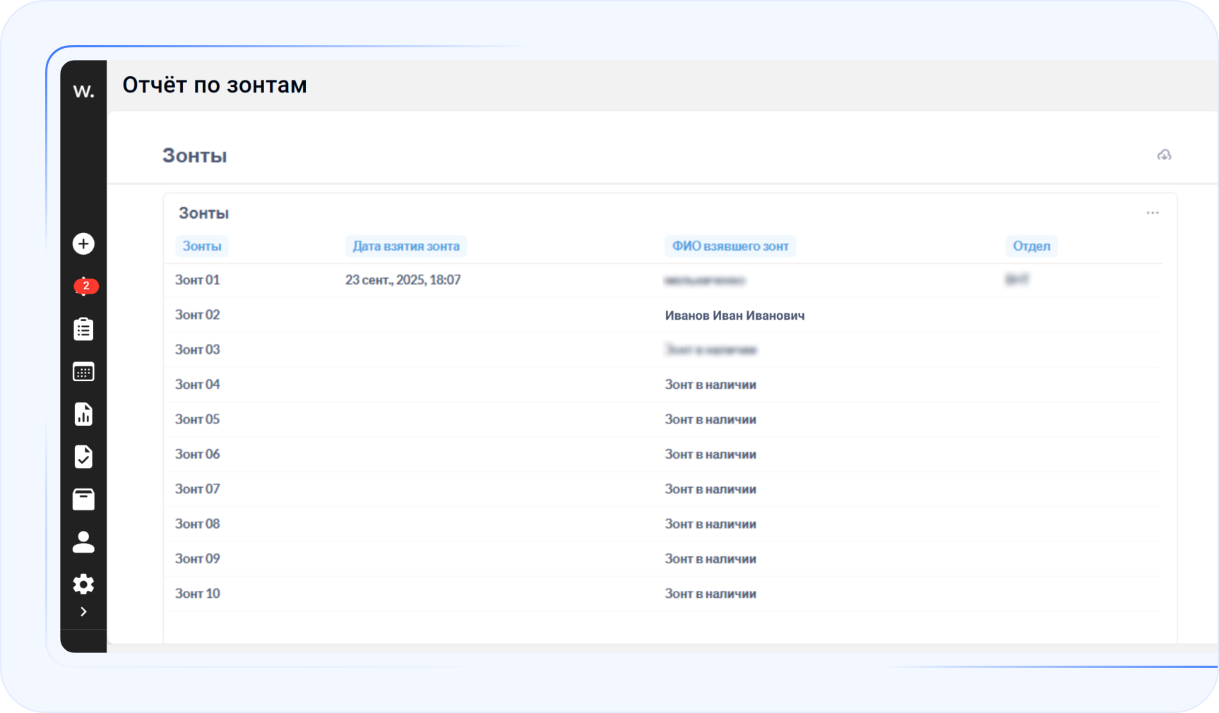 Cекретарь администрирует процесс через веб-версию Wave Service на дашборде: видит, кто взял, когда, вернул ли. Запоминать, у кого зонт и сколько времени на руках теперь не нужно, это делает система.