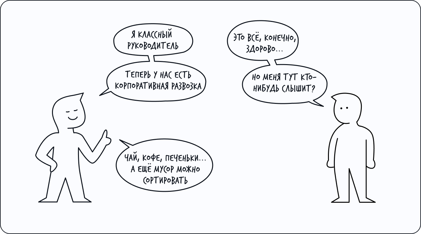 Мир офисных сотрудников и их руководителей часто сильно отличается. Когда одни уверены, что всё в офисе идёт хорошо, вторые — молчаливо злятся, копят обиды или только тихо мечтают о чём-то, что можно улучшить.