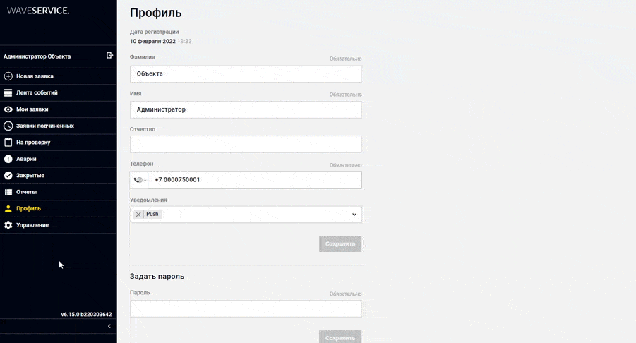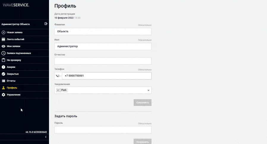 • Чтобы прикрепить пользователя к компании, необходимо добавить ему любую роль в системе Wave Service. Присваивать роли заявителям может сотрудник компании с ролью «Администратор».